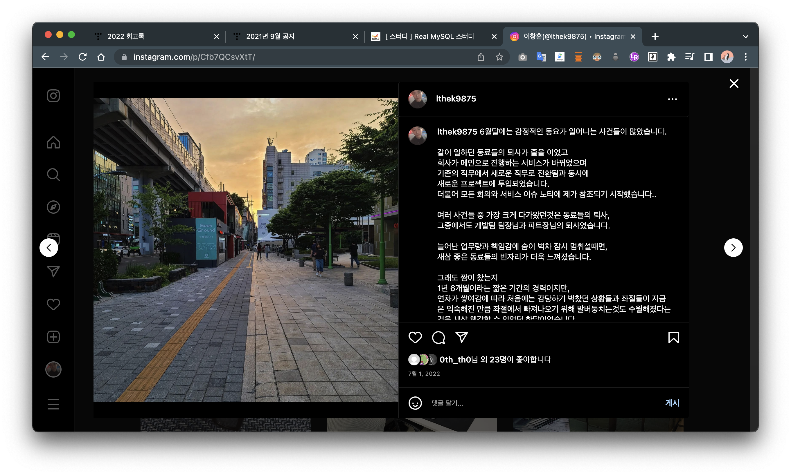 앞선 이슈들이 있고난뒤 올린 인스타에는 참담한 심정만이 남아있습니다.