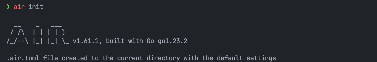 air init 명령어가 정상적으로 실행되었다면, .air.toml 파일이 정상적으로 생성된것을 확인 할 수 있습니다.